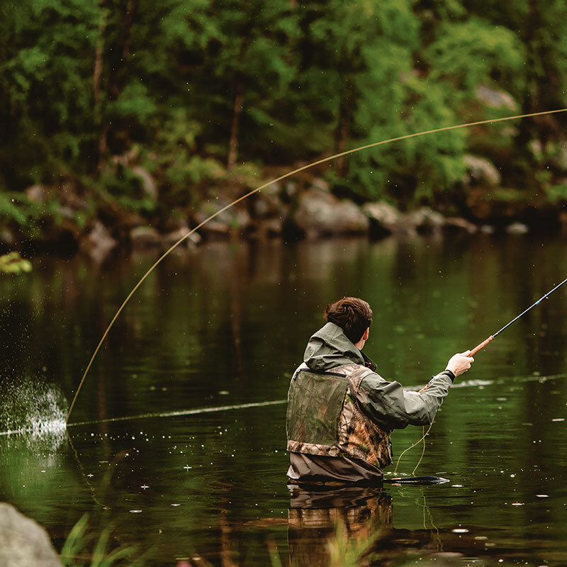 För långa och bekväma dagar vid vattnet erbjuder vi vadarbyxor, vadarskor, solglasögon, kepsar och praktiska kläder anpassade för flugfiske i varierande väderförhållanden.